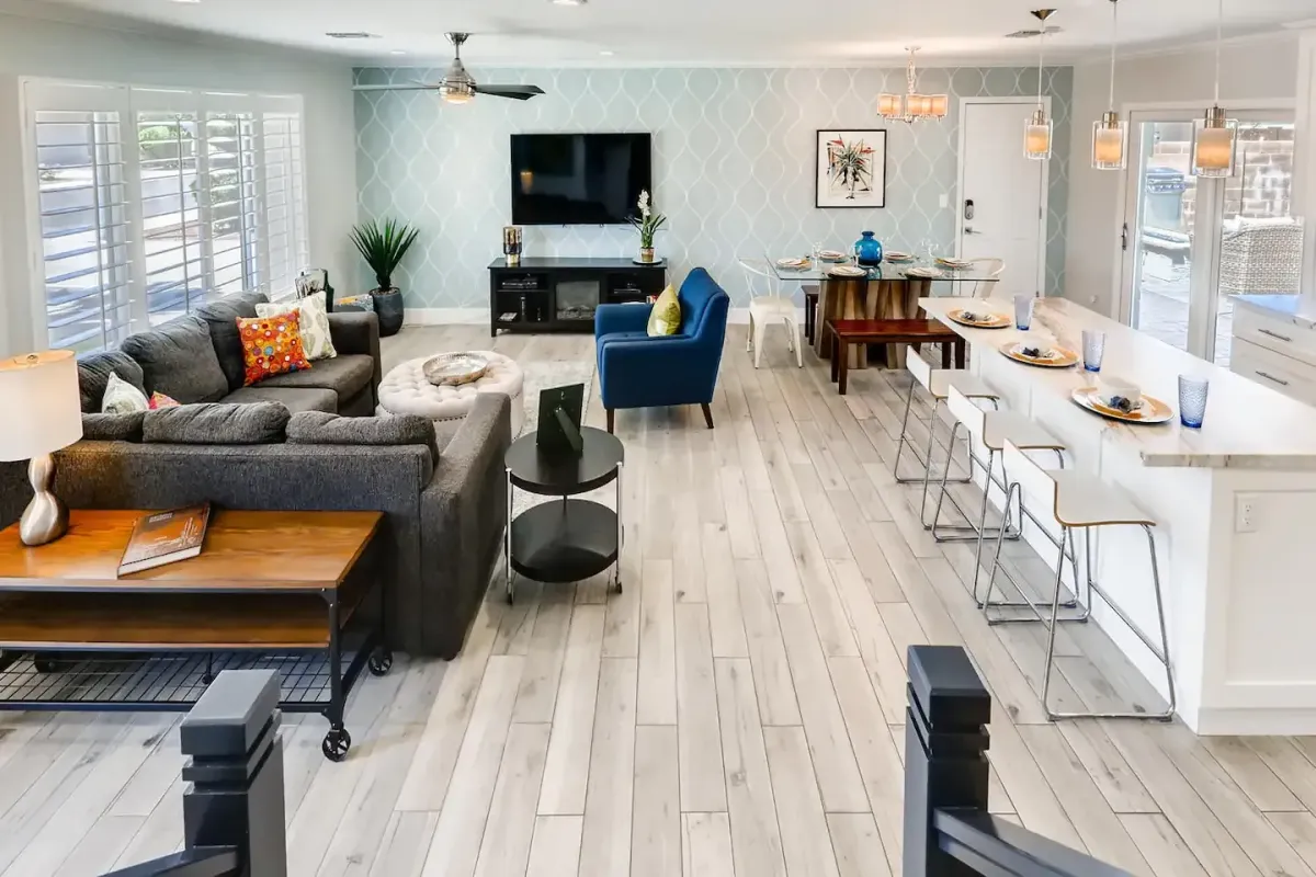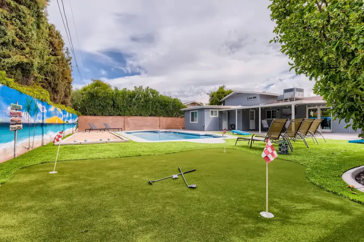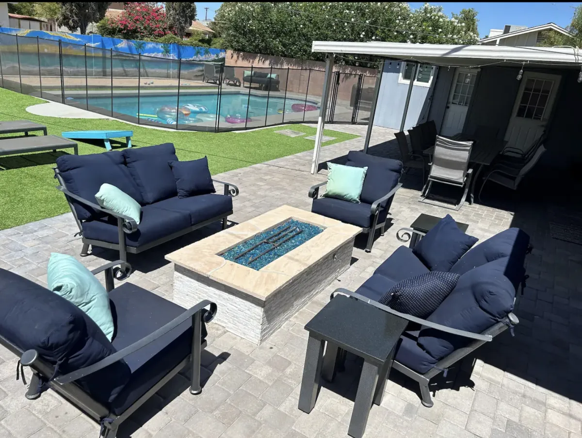 Our 1913-square-foot home boasts two spacious master suites, each featuring a luxurious king-sized bed and an ensuite full bathroom for the ultimate comfort and privacy. One master suite occupies its secluded floor, ensuring serenity and exclusivity, while the other resides in the casita, offering stunning pool and backyard views. But the magic extends beyond the bedrooms; our outdoor haven beckons with a fire pit, a fun-filled put-put golf course, a bocce ball court, and an expansive outdoor table accommodating 12 guests. Your perfect Scottsdale adventure begins here, where every room and outdoor space is thoughtfully designed for your enjoyment.